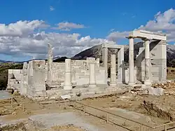 The Temple of Sangri is a Late Archaic Greek temple on the Cycladic island of Naxos in the area of Gyroulas, about 1.5 km south of Ano Sangri. The temple was built around 530 BC and is one of the earliest Ionic temples. It was built completely from Naxian marble.