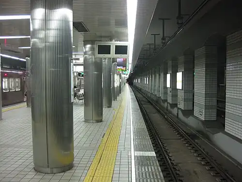 - The station on the Sakaisuji Line is located under the station on Nankai Railway, and was constructed together with the elevation of the Nankai Railway lines. An island platform serving 2 tracks and a side platform serving a track are located on the first basement. The side platform is used as the arrival platform.