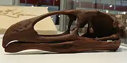 The T. merriami was similar to condors, although an analysis of the functional morphology of its skull, namely its larger bill and ability to spread its mandibles and swallow its prey whole, suggests that it was an active and carnivorous predator rather than a scavenger. In fact, some studies of skull morphology indicated that the T.merriami were incapable of tearing pieces of flesh off of carcasses in the manner of condors. Alternative viewpoints note that many old world vultures possess large bills, and a longer bill is a common feature among scavenging raptors, as this allows them to probe deeper into large carcasses - larger than those fed upon by active-hunting raptors. Other anatomical features, such as the relatively small and sideward facing orbits and the low skull, are also consistent with a scavenging lifestyle.[10][11] For the T.merriami, small prey such as frogs, lizards, young birds, and small mammals were swallowed whole, while carrion would have been fed on in a manner similar to that of condors or vultures.[3]