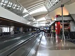 The terminal opened in 1962 and was expanded to accommodate widebody aircraft in 1970.[35] The terminal was expanded in 1982 with the addition of a connector building, which today consists of gates 70A-70B and 71A-71B.[35] Four of these gates have two jetways, which accommodate large aircraft. The interior of the terminal was renovated between January 1998 and June 1999 at a cost of $250 million, was designed by HNTB, and was constructed by Hensel Phelps Construction. Added were new gate podiums, increased size of gate areas, relocated concessions, expanded restrooms, new flooring, and new signage.[41] Also, the roof of the terminal was raised, and new, brighter light fixtures were added in order to provide more overall lighting.[42] In 2017, Terminal 7 underwent another renovation, with significant changes to concessions.