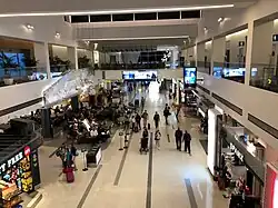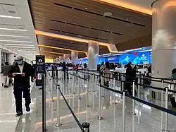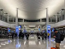 Terminal 2 was built in 1962 and was the original international terminal. It was completely torn down and rebuilt in stages between 1984 and 1988 at a cost of $94 million.[19] The rebuilt terminal was designed by Leo A Daly.[20] Terminal 2 has CBP (Customs and Border Protection) facilities to process arriving international passengers, but the facility was closed in 2020 and temporarily repurposed as a domestic bag claim area during construction of Terminal 3. As of February 2023, the CBP facility is being rebuilt.[21]