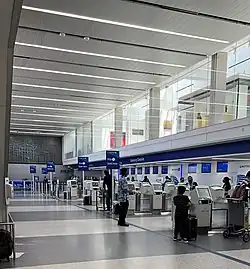 Terminal 5 has 17 gates: Gates 50, 51A, 51B, 53A, 53B, 54A, 54B, 55A, 55B, 51A–51D, 57–59, and a bus gate. Gates 52A–52I are located at the Regional Terminal.[29] As of March 2024, the terminal serves as a hub for American Airlines along with Terminal 4 and the Regional Terminal.[16] The terminal is also used by JetBlue and Spirit Airlines.