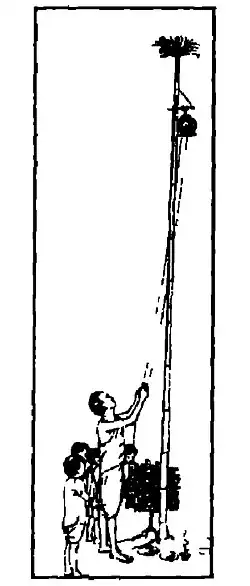 |  Mera Thaomei, a lamp tied to a tall bamboo pole being lighted during Mera Hou Chongba festival | |