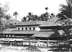 Tharavad, also spelled as Tharavadu () (തറവാട്), is the ⓘMalayalam word for the ancestral home of aristocratic Nair families[1][2] in Kerala, which usually served as the common residence for the matrilineal joint family under the Marumakkathayam system practiced in the state.[3][4] German linguist Hermann Gundert, in his Malayalam—English dictionary published in 1872, defines a Tharavadu as, "An ancestral residence of land-owners and kings", and also as, "A house, chiefly of noblemen".[5] It was classically the residence of Jenmimar, but contemporary usage of the word is now more generic to all social classes and religions in Kerala.[6] By extension, the word refers not just to the family's house but also to the extended family that shares that house. Heads of tharavadus - usually the eldest living male - were known as Karnavars, and junior members as Anandravans.