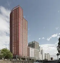 - ^ a b c d e Spocchia, Gino (21 August 2024). "Hawkins\Brown to break Scottish high-rise record with 36-storey student tower". The Architects’ Journal. Retrieved 23 August 2024.