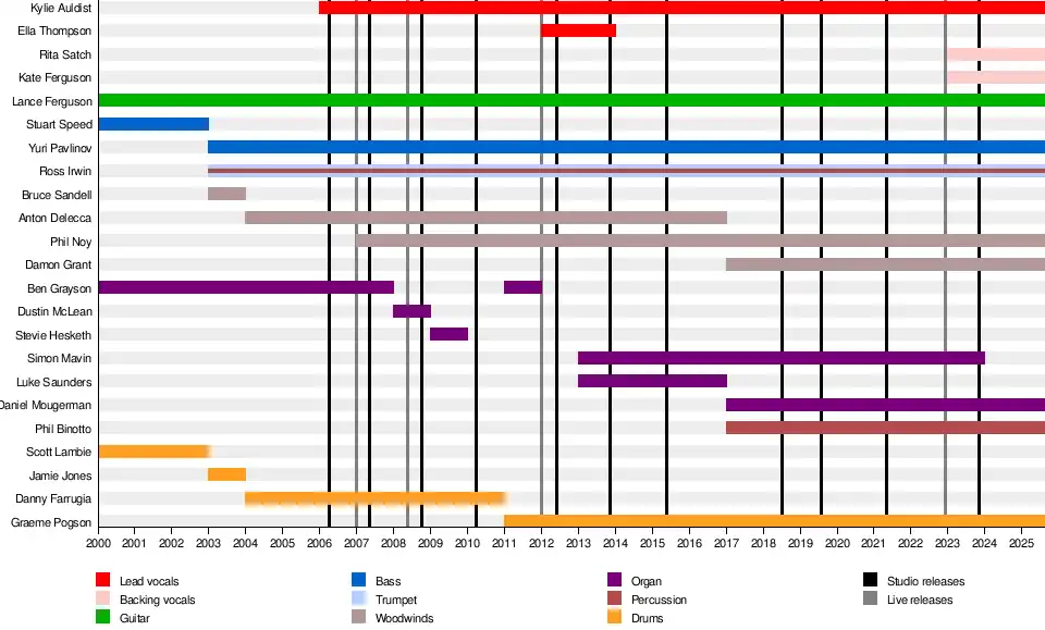 In 2017, Lance Ferguson released his debut solo album Raw Material, while several band line-up changes occurred, with tenor saxophonist Damon Grant joining after Anton Delecca moved to New York. Keyboardist Luke Saunders also left and was replaced by Daniel Mougerman. Percussionist Phil Binotto joined in 2017 to expand the group to a 9-piece lineup.