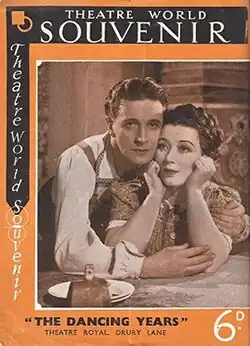 The musical was first produced at London's Theatre Royal, Drury Lane on 23 March 1939, directed by Novello's frequent collaborator Leontine Sagan.[1] Novello starred opposite Mary Ellis. It closed at the start of the Second World War in September 1939 after 187 performances. After a three-year provincial tour, the show reopened at the Adelphi Theatre on 14 March 1942, running there until July 1944, for a total of 969 performances. It was the most popular show of the war and earned an estimated £1,000,000.[2] After this, the show toured extensively in Britain and was revived numerous times, including in London, and was adapted for film and television. The 1968 West End revival starred June Bronhill.[3]