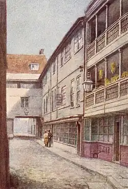 The George Inn, or The George, is a public house established in the medieval period on Borough High Street in Southwark, London, owned and leased by the National Trust. It is located about 250 metres (820 ft) from the south side of the River Thames near London Bridge and is the only surviving galleried London coaching inn.[1]