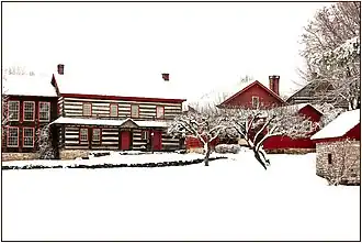 Beginning in 1985, the log farmhouse and stone farmhouse were purchased and restored by Clarke Hess, a descendant of the immigrants Hans and Magdalena Hess.[16] Clarke Hess also relocated several historic outbuildings to the homestead. Those outbuildings had been threatened with demolition at their previous sites, including a stone spring house, a pig sty with hand-hewn timbers, and a ca. 1785 central-chimney log cabin.