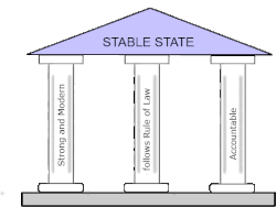 A successful modern liberal democracy balances all three components to achieve stability.[47]