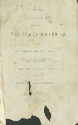 The Peace Maker is a thirty-six page pamphlet written by Udney Hay Jacob and published in Nauvoo on October 29, 1842 which rejected the growing rights of women on Biblical grounds.[1][2] Jacob claimed female power was growing, it was dangerous, and the way to curtail it was through polygamy and granting men the sole power of divorce.[1] The pamphlet was adapted from a longer Biblical treatise that Jacob had presented to President Martin Van Buren in 1840.[1]