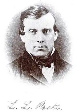Pratt's father was an architect and a member of the Massachusetts state legislature.[18] Levi Louis "L.L." Pratt began his journalism career as an apprentice at the Northampton Courier, where he met his lifelong friends Beman Brockway (1815 - 1892) and Willard McKinstry (1815 - 1899). Each of the three was a staunch Whig.[19] Brockway and Pratt soon operated a newspaper in the Chautauqua County village of Mayville, New York, while McKinstry operated another in nearby Erie, Pennsylvania.[20] Members of Brockway's family settled in southern Chautauqua County, and his sister Nancy married Benjamin Greely (Greeley), first cousin of Horace Greeley, whose family members had also settled in southern Chautauqua County and nearby Erie County, Pennsylvania.[21]