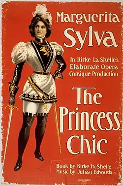 The Princess Chic is an operetta in three acts with music by Julian Edwards and a libretto by Kirke La Shelle.[1] Set in 15th century France, the work tells the tale of a fictional romance between Princess Chic of Normandy and Charles the Bold, the Duke of Burgundy during the time when the duke is in conflict with King Louis XI. While the operetta was not a success with New York critics and its Broadway run in 1900 was short, the work was ultimately profitable for its creators and had a lengthy tour that lasted ten years. The work is notable for forwarding the career of popular operetta soprano Christie MacDonald who portrayed the title role as her first leading part on the stage. Both musical selections from the operetta and a complete vocal score of the work were published by M. Witmark & Sons.