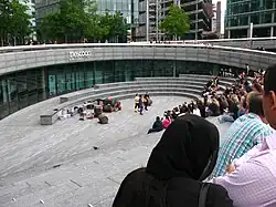 The Scoop is an outdoor amphitheatre situated on the south side of the River Thames near Tower Bridge in London, located next to City Hall, providing seating for approximately 800 people.[1] Designed by Townshend Landscape Architects, it is a venue used during the summer to show films, musical performances and theatre productions by such companies as the Steam Industry and the Pantaloons.[2] In June 2008, films shown at the Scoop included The Dam Busters, Atonement and Withnail and I.[3] The Scoop has been used as a performance venue since 2002.[4]