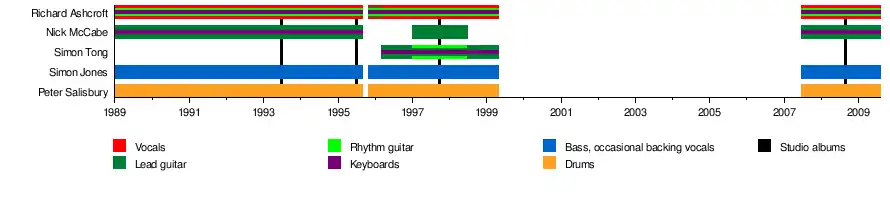 - Richard Ashcroft – lead and backing vocals, rhythm guitar, keyboards (1990–1995, 1995–1999, 2007–2009)