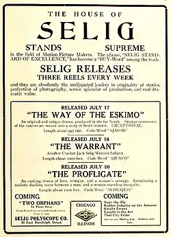- ^ Image of Selig promotional flyer for Lost in the Arctic, image "File:Release flier for LOST IN THE ARCTIC, 1911.jpg", Wikipedia Commons. Retrieved May 29, 2020.