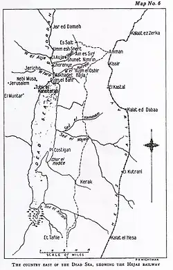 Following the victory at the Battle of Jerusalem at the end of 1917, and the Capture of Jericho in February 1918, the Egyptian Expeditionary Force (EEF) crossed the Jordan River, establishing bridgeheads in March prior to the First Transjordan attack on Amman. These bridgeheads remained after the Second Transjordan attacks on Shunet Nimrin and Es Salt when a second withdrawal back to the Jordan Valley took place from 3 to 5 May. This marked the end of major operations in the area until September 1918.[1] General Edmund Allenby, the commander of the EEF, decided to occupy the Jordan Valley during the summer of 1918 for a number of reasons. A retreat out of the valley would further enhance the morale of the German and Ottoman forces, and their standing among the peoples living in the region, following their two Transjordan victories.[2] So important did Allenby consider the support of the Hedjaz Arabs to the defence of his right flank, that they were substantially subsidised: