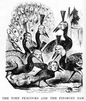 Wakley as Jackdaw plucking feathers from the peacocks of his times. Punch 1841