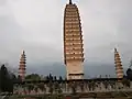 The Three Pagodas of the Chongsheng Temple (Chinese: 崇圣寺三塔; pinyin: Chóngshèng Sì Sāntǎ) are an ensemble of three independent pagodas arranged on the corners of an equilateral triangle, near the old town of Dali, Yunnan province, China, dating from the time of the Kingdom of Nanzhao and Kingdom of Dali in the 9th and 10th centuries.
