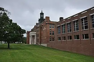 Ticonderoga High School is a historic high school building located at Ticonderoga in Essex County, New York. It was built in 1928-1930 and is a three-story, masonry neo-Georgian style building with a slate roof, concrete foundation, and brick walls. It features a semi-circular portico with Corinthian order columns and a balustrade and a copper polygonal cupola.[3]