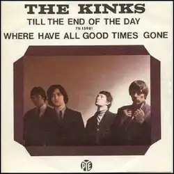 "Till the End of the Day" is a song by the Kinks, written by Ray Davies and released as a single in 1965 and later on their album The Kink Kontroversy. It centres on power chords, like many of the group's early hits, and was similarly successful, reaching number eight in the United Kingdom[6] and number 50 in the United States, spending eight weeks or more in each chart.[7]