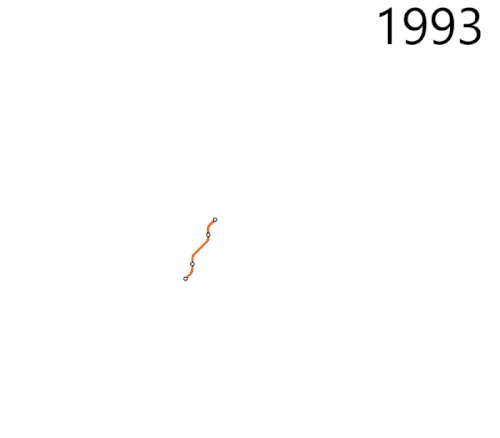 - December 27, 2000 – An extension and a new line enters operation (27.10 km or 16.84 mi, 20 (17 new) stations):[7][1]