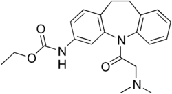 | Systematic IUPAC name Ethyl {5-[(dimethylamino)acetyl]-10,11-dihydro-5H-dibenzo[b,f]azepin-3-yl}carbamate | |