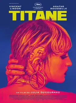 Titane (French: [titan] , lit. ⓘ 'Titanium') is a 2021 body horror psychological drama film[5][6] written and directed by Julia Ducournau. The French-Belgian co-production stars Agathe Rousselle in her feature film debut as Alexia, a woman who, after being injured in a car crash as a child, has a titanium plate fitted into her head. In adulthood, Alexia becomes a murderous car model with an erotic fascination with automobiles, leading to a bizarre sexual encounter that sets off an increasingly outlandish series of events. Vincent Lindon, Garance Marillier and Laïs Salameh also star.