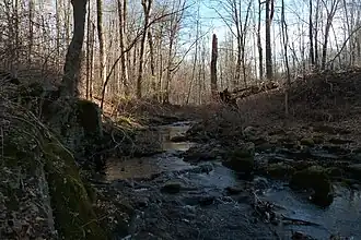 The Titicus River is an 8.5-mile-long (13.7 km) river in southwestern Connecticut and southeastern New York that drains into the Titicus Reservoir, part of New York City's water supply system. Part of both the Croton River watershed and the system's Croton Watershed, the river has a 23.8 square miles (62 km2) drainage area.[1] It is one of the few rivers with headwaters in Connecticut that is part of the system. The source of the river is in Ridgefield, Connecticut. About one mile down stream, the stream marks the southern boundary of the Kiahs Brook Reserve. Another 0.5 miles downriver, it joins with Kiahs Brook, and then runs fairly close to Route 116.[3] Once past the New York border, the Titicus River still runs close to New York 116 until emptying into the Titicus Reservoir. After the Titicus Reservoir, it runs another 0.5 miles, under I-684, and drains into the Muscoot Reservoir.