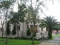 Facing the Jardín Principal, there is the “Palacio de Gobierno” (Government Palace), which was the site of the government of the State of Mexico, when Tlalpan served as state capital for six years in the early 19th century. Since then, it was used as a barracks for Benito Juárez’s soldiers, a jail, a residence for the Empress Carlota and the site of the Instituto Literario (today the Universidad Autónoma del Estado de México) .[3] Today, it serves as the headquarters of the borough, although it is also commonly referred to as the “ex palacio municipal” (former municipal palace) referring to the time when Tlalpan was an independent municipality in the State of Mexico. The current structure was built between 1889 and 1900 in Neoclassical style.[3]