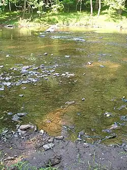 Prior to European settlement, the area through which the creek runs was inhabited by the Lenape tribe. The area was called Tachan Hoking (pronounced Toc-ahn Hok Ing) or "Piece of Wood Area Place."[2] It could also mean Achtuhhu Ing (pronounced "Awk-too-who Ing") or "Deers Place."[3] Early white settlers in the area noted the fast, constant current of the creek, and by the late eighteenth century a number of water-powered mills had sprung up along the lower portion of the Tohickon valley.[4] Notable among these was the grist mill of Ralph Stover, in Plumstead Township. During the Great Depression of the 1930s, long after the mill had been shut down, the Stover heirs gave the area around the mill to the Commonwealth of Pennsylvania. After the Federal Works Progress Administration converted the area for recreational use, a Ralph Stover State Park was opened to the public in 1935.