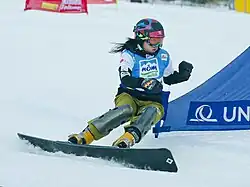 Tomoka Takeuchi (竹内 智香, Takeuchi Tomoka; born 21 December 1983) is a Japanese competitive snowboarder from Asahikawa, Hokkaido.[1] She won the silver medal in the Women's Parallel Giant Slalom in the 2014 Winter Olympics in Sochi, Russia.[2] At the 2018 Winter Olympics in Pyeongchang, South Korea, she placed 5th in the Women's Parallel Giant Slalom.[3]