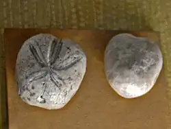 | Fossil of Heteraster oblongus from France, on display at Galerie de paléontologie et d'anatomie comparée in Paris | |