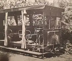 ^The first batch of Campagne railcars had 24 seats, while the second batch only had 20 seats, albeit with upholstered seats. The sidecars were classic Decauville steam tramcars (Baladeuse, type "KE") with 56 seats (including 48 seats), in their original condition with minor adaptations. There were also short sidecars that the SGTR workshops had built themselves on the chassis of an old closed Decavuville carriage (type "IS"). The railcar pulling the inaugural train of the 600 mm forest railway had been re-gauged from metre gauge to 600 mm gauge in order to operate the re-gauged forest railway lines as an extension of the steam tramways.