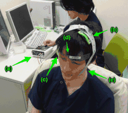 ![]() Anodal tDCS administration. Anodal (b) and cathodal (c) electrodes with 35 cm2 size are put on F3 and right supraorbital region, respectively. A head strap is used (d) for convenience and reproducibility, and a rubber band (e) for reducing resistance. | |