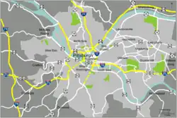 Map showing major highways in Pittsburgh and its surrounding region