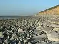 Tresilian Bay, also Tresillian Bay, is a bay in southeast Wales, west of Llantwit Major's Collugh beach and east of St Donats, on the Bristol Channel. The beach at the bay lies in front of a valley in which the Nant Tresilian flows and empties in the sea. It lies along a stretch of coast and cliff path under protection by the Glamorgan Heritage Coast,[1] characterised by limestone cliffs with many caves and several bays/valleys.[2] There is a distinctive white house, Tresilian House, located at Tresilian Bay at the end of the valley in front of the pebble beach and a pill box on the cliff nearby. The cove of Col Huw is located nearby.[3]