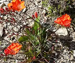 Tritonia (flame freesia) is a genus of flowering plants in the iris family first described as a genus in 1802. They are naturally distributed across southern Africa, with a high concentration of species in Cape Province of western South Africa.[1] The genus is closely related to the genus Ixia.