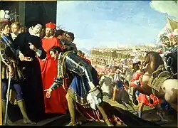 The historical reconstructions of the subsequent period are connected to the different readings of the story: Orsini's diplomatic missions (particularly those in France) are explained by some with Cosimo I's desire to distance Orsini from his daughter;[11] by others with political purposes and diplomatic representation.[12] By some, the killing was seen as extreme revenge by Grand Duke Francesco after the death of his sister Isabella, killed at the behest of her husband Paolo Giordano who had discovered her betrayal with Orsini[13] or, instead, with political reasons, linked either to the campaign to eliminate the Florentine exiles in France (Galluzzi, 1781; Diaz, 1987), or to the ambiguity of the position that Orsini had assumed in France, due to which he would have lost the trust of the Grand Duke[14]