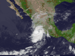 ![]() Tropical Storm Dolores at peak intensity on June 19, 2021.  | |