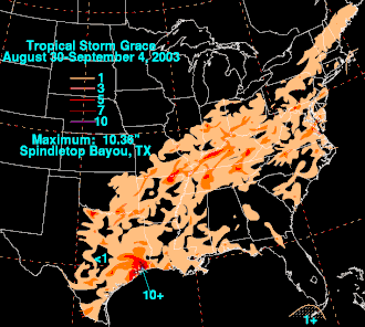 - ^ a b c d e Hydrometeorological Prediction Center (2005). "Rainfall data for Tropical Storm Grace". Retrieved 2006-08-16.