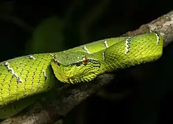The Bornean keeled green pit viper or North Philippine temple pit viper (Tropidolaemus subannulatus) is a pit viper species native to Brunei, Indonesia, Malaysia, and the Philippines. Until 2007, this species was considered part of the Tropidolaemus wagleri species complex.[2]