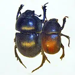 Adults can be found from spring to summer. These beetles are coprophagus, occasionally mycophagous.[3] They usually carry to the nest portions of animal droppings, on which the females will deposit the eggs.[6]