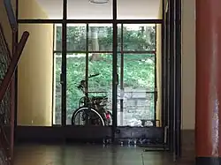 Another feature, unusual for the time, was that the building housed an underground garage. A tenant, arriving by car, could drive down a ramp that led through a tunnel to the garage, which was separate from the rest of the building, and which was under the garden. Someone arriving by car could park in the garage and then reach their apartment either by the staircase or by a lift that went from the basement to the fourth floor.