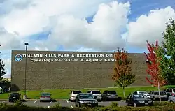 Tualatin Hills Park & Recreation District (THPRD) is a special parks district located in the eastern part of Washington County in the U.S. state of Oregon. Created in 1955, the district covers all of the city of Beaverton and many of those communities surrounding Beaverton in the Portland metropolitan area. The district covers an area of 50 square miles (130 km2) and serves a population of about 220,000, making it the largest parks district in Oregon. Tualatin Hills operates over 200 facilities totaling 2,100 acres (850 ha), including eight swimming centers. The district has an annual budget of $40 million and is overseen by a five-person board of directors.