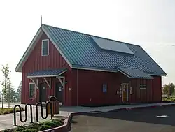 The district became the third parks district in Oregon, with two in Lane County already in existence.[9] Stuhr was elected as one of the three original directors, and was then elected as president at the board's first meeting.[2][9] She and the other two original directors of the district had been members of the Tualatin Hills Park and Recreation Council.[10] When formed, the assessed value of the land in the district totaled $12 million, the population was about 22,000, and the budget for the first year was $65,000.[11][12] William B. Pond was hired as the district's first superintendent in July 1955, and he started work in the position on September 1 at a salary of $7,500 per year.[13]