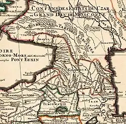 The term Turcomania was primarily used by European travelers and cartographers to describe areas inhabited by Turkomans. Among the earliest references appears in The Travels of Marco Polo, where Marco Polo refers to it as “the province of Turcomania”, a region encompassing much of the former Seljuk realm in Central Anatolia.[1] In addition, Marco recounts traveling “northward into Turcomania, past Caesarea and Sivas, to Erzincan”.[4] Other medieval geographical narratives mention Turcomania, such as the 13th-century missionary and explorer William of Rubruck describing his journey "through Georgia, Armenia, and Turcomania".[5]