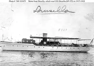 ![]() USS Drusilla (SP-372) in port ca. 1918. | |