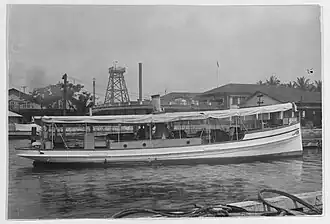 She was seized by the United States at the Cavite Navy Yard in 1898 sometime after the Battle of Manila Bay from Spain during the Spanish–American War.[2][1] Her original name, place of building, date of origin, and classification are unknown.[2][1] In 1898, she was christened USS Iona, commissioned the United States Navy, and assigned to the Cavite Navy Yard, 16th Naval District, United States Asiatic Fleet.[2][1][3] On 17 July 1920, she was designated as District Harbor Tug YT-107.[2][1] She is believed to have been destroyed in an air raid at Cavite Navy Yard during the Japanese occupation of the Philippines on 3 January 1942.[2][1][4]