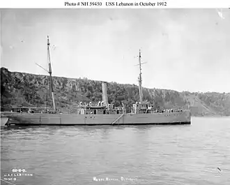 USS Lebanon (AG-2) was a 3,285-long-ton (3,338-metric-ton) collier, which the United States Navy acquired in 1898 from the Philadelphia and Reading RR. Company to provide coal for Navy warships during the Spanish–American War. When the need for her coal was no longer a necessity, Lebanon was assigned various duty such as transporting stores as well as target repair and towing operations.